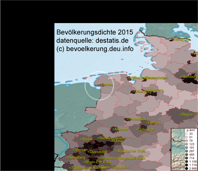 Karte ist eine Bevölkerungsdichtekarte. Mehr Details unter bevoelkerung.deu.info