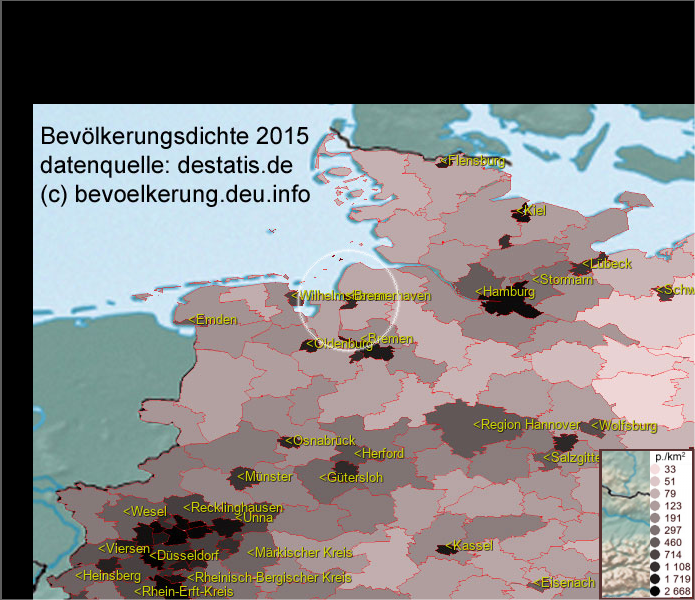 Karte ist eine Bevölkerungsdichtekarte. Mehr Details unter bevoelkerung.deu.info