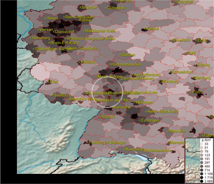 Karte ist eine Bevölkerungsdichtekarte. Mehr Details unter bevoelkerung.deu.info