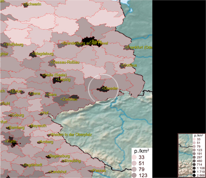 Karte ist eine Bevölkerungsdichtekarte. Mehr Details unter bevoelkerung.deu.info
