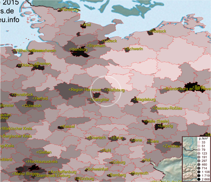 Karte ist eine Bevölkerungsdichtekarte. Mehr Details unter bevoelkerung.deu.info
