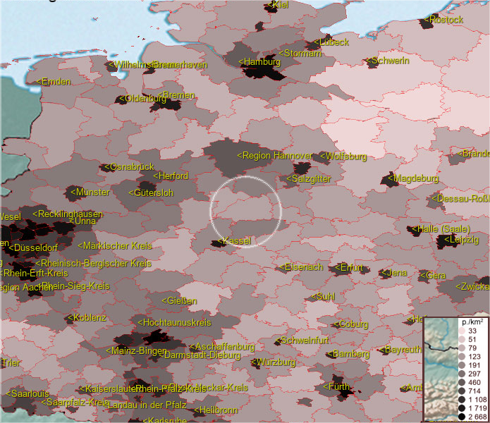 Karte ist eine Bevölkerungsdichtekarte. Mehr Details unter bevoelkerung.deu.info