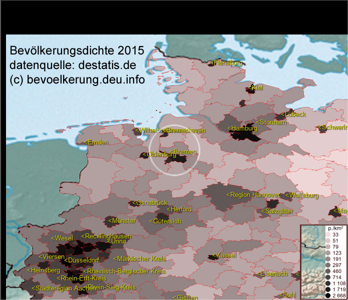 Karte ist eine Bevölkerungsdichtekarte. Mehr Details unter bevoelkerung.deu.info