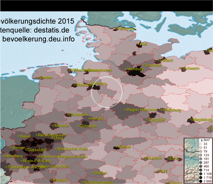 Karte ist eine Bevölkerungsdichtekarte. Mehr Details unter bevoelkerung.deu.info