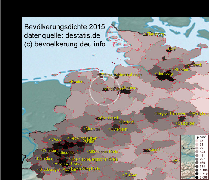 Karte ist eine Bevölkerungsdichtekarte. Mehr Details unter bevoelkerung.deu.info