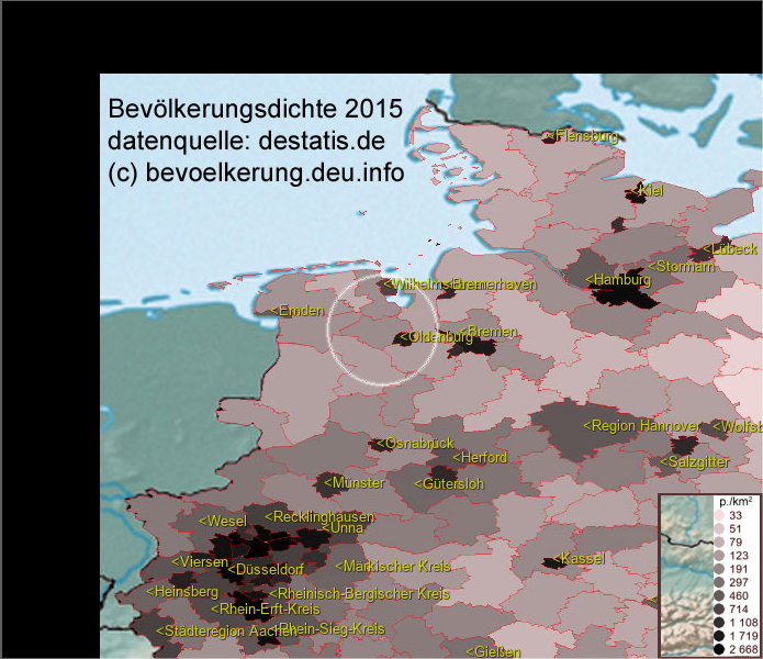 Karte ist eine Bevölkerungsdichtekarte. Mehr Details unter bevoelkerung.deu.info