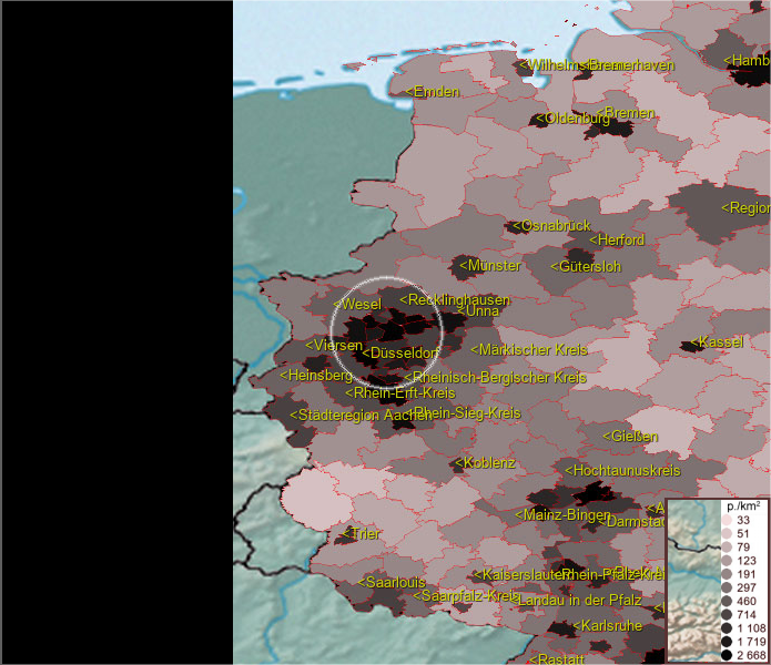 Karte ist eine Bevölkerungsdichtekarte. Mehr Details unter bevoelkerung.deu.info