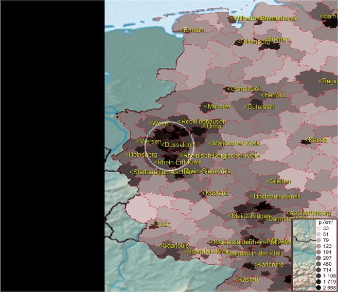 Karte ist eine Bevölkerungsdichtekarte. Mehr Details unter bevoelkerung.deu.info