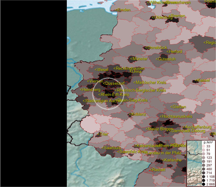 Karte ist eine Bevölkerungsdichtekarte. Mehr Details unter bevoelkerung.deu.info