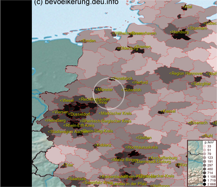 Karte ist eine Bevölkerungsdichtekarte. Mehr Details unter bevoelkerung.deu.info