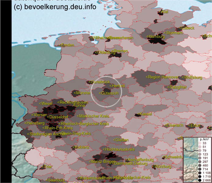 Karte ist eine Bevölkerungsdichtekarte. Mehr Details unter bevoelkerung.deu.info