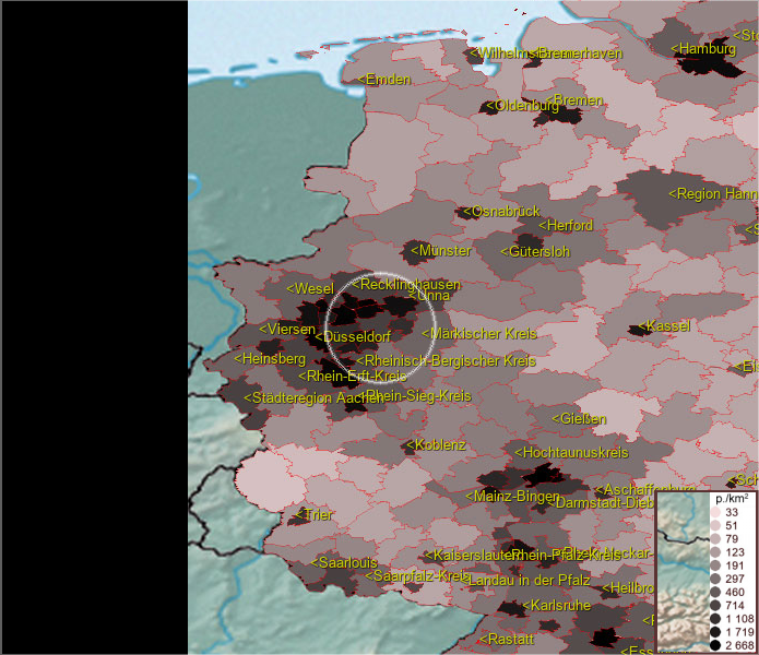 Karte ist eine Bevölkerungsdichtekarte. Mehr Details unter bevoelkerung.deu.info