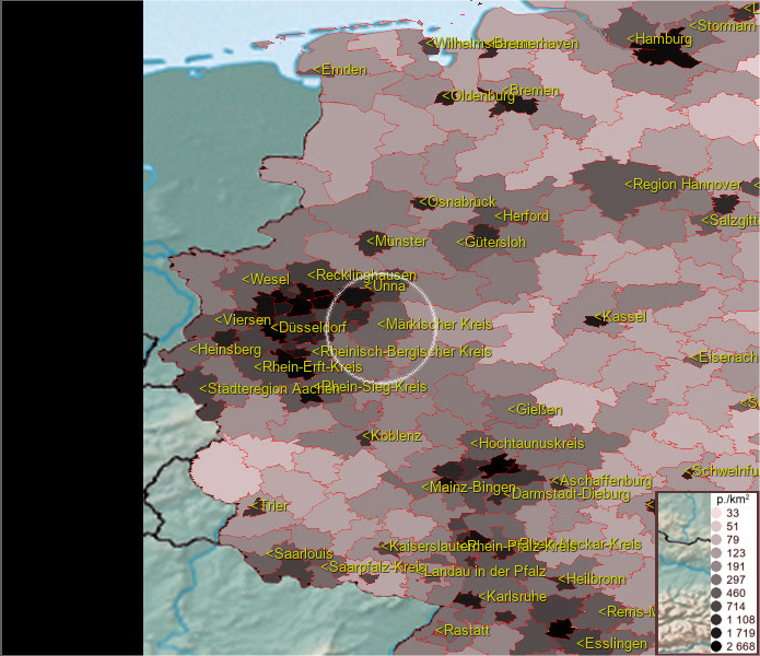 Karte ist eine Bevölkerungsdichtekarte. Mehr Details unter bevoelkerung.deu.info