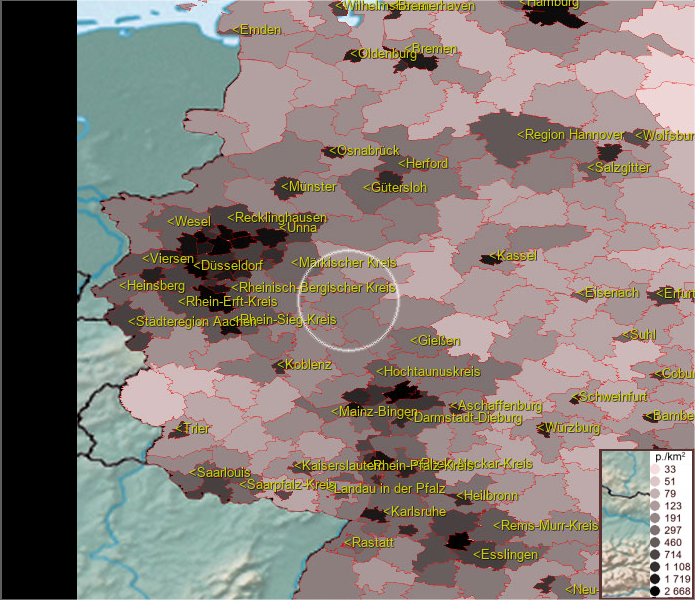 Karte ist eine Bevölkerungsdichtekarte. Mehr Details unter bevoelkerung.deu.info