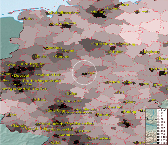 Um Postleitzahlen im Kassel Landkreis zu finden, wählen Sie bitte Gemeinde (die Liste befindet sich unter der Karte)