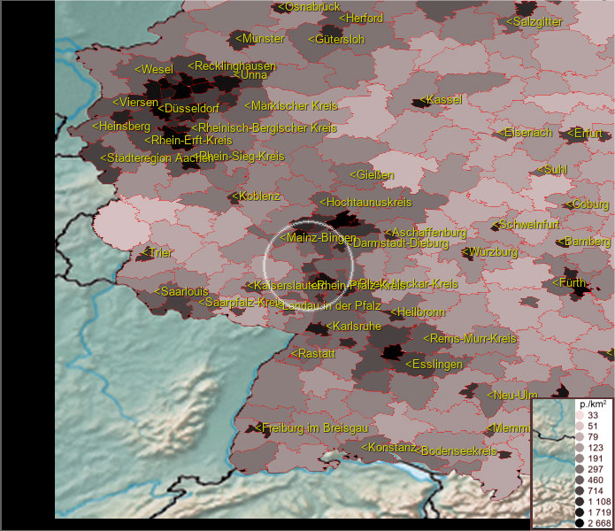 Karte ist eine Bevölkerungsdichtekarte. Mehr Details unter bevoelkerung.deu.info