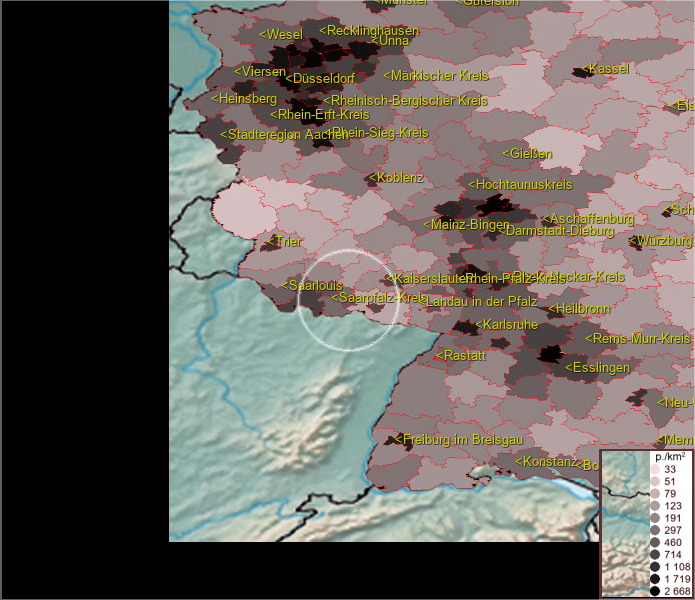 Karte ist eine Bevölkerungsdichtekarte. Mehr Details unter bevoelkerung.deu.info