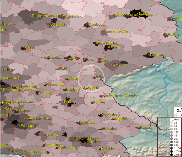 Um Postleitzahlen im Hof Landkreis zu finden, wählen Sie bitte Gemeinde (die Liste befindet sich unter der Karte)
