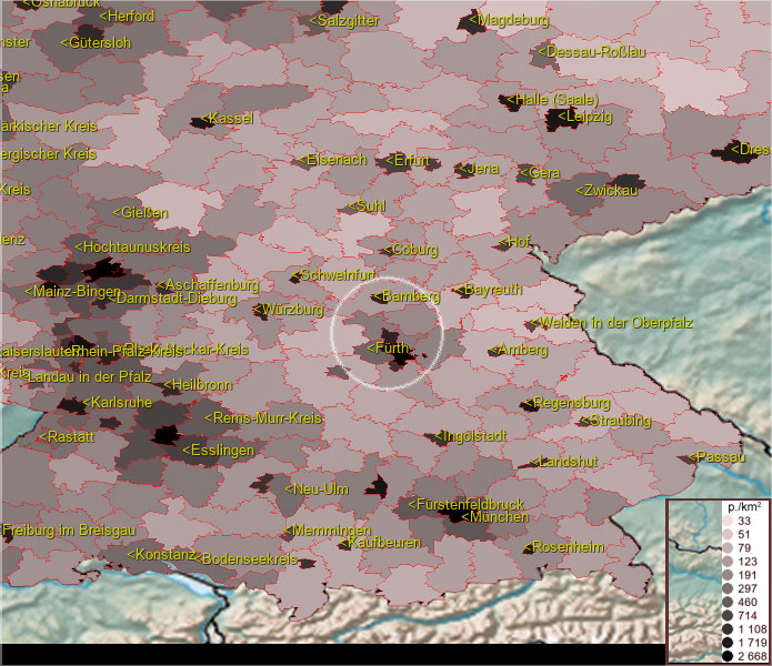Um Postleitzahlen im Erlangen Kreisfreie Stadt zu finden, wählen Sie bitte Gemeinde (die Liste befindet sich unter der Karte)