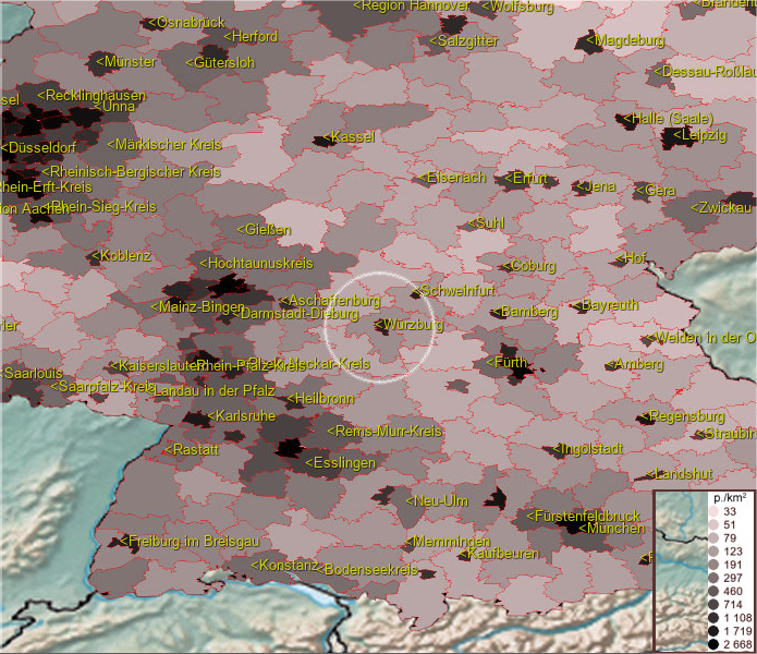 Karte ist eine Bevölkerungsdichtekarte. Mehr Details unter bevoelkerung.deu.info