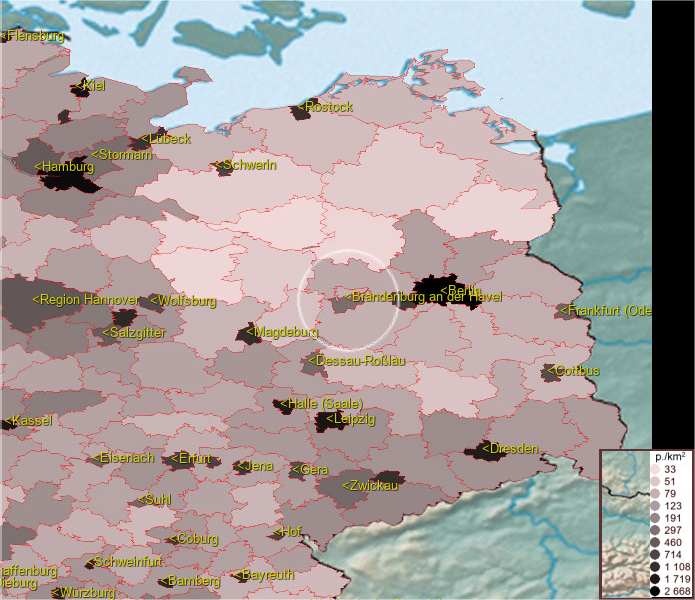 Karte ist eine Bevölkerungsdichtekarte. Mehr Details unter bevoelkerung.deu.info