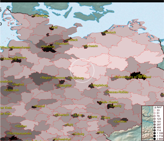 Karte ist eine Bevölkerungsdichtekarte. Mehr Details unter bevoelkerung.deu.info