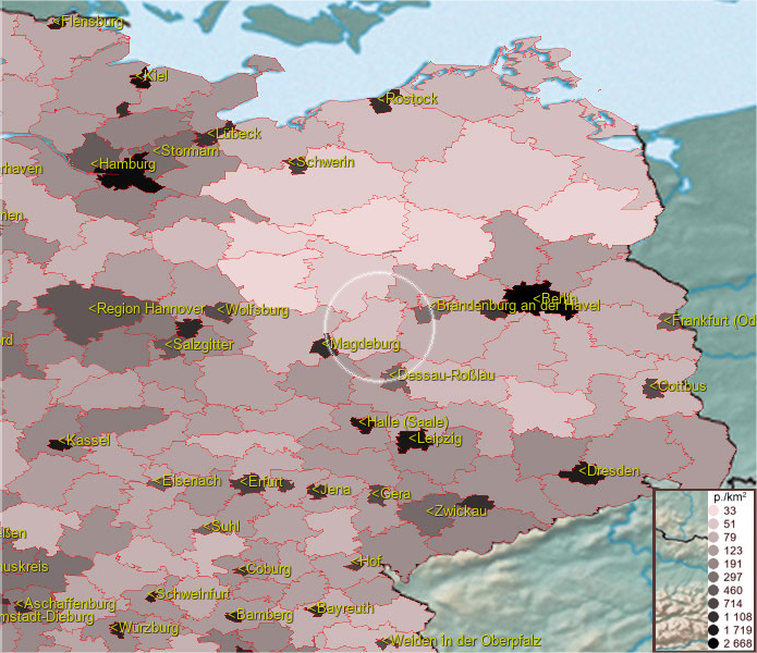 Karte ist eine Bevölkerungsdichtekarte. Mehr Details unter bevoelkerung.deu.info