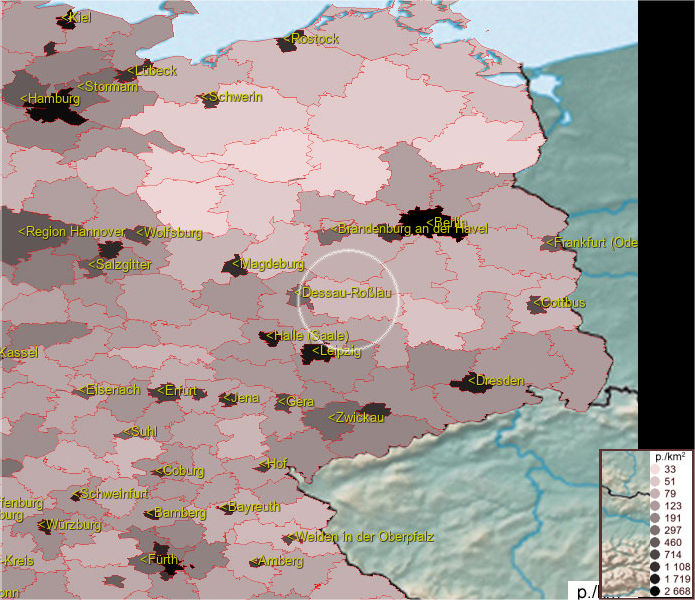 Karte ist eine Bevölkerungsdichtekarte. Mehr Details unter bevoelkerung.deu.info