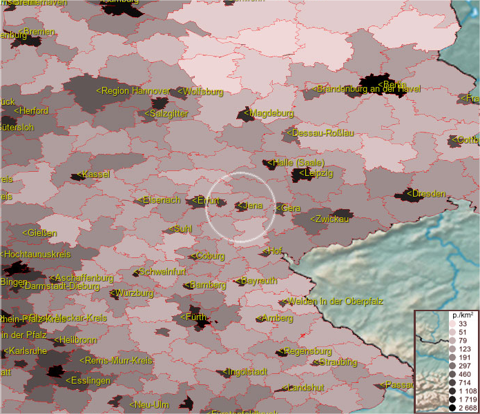 Um Postleitzahlen im Jena Kreisfreie Stadt zu finden, wählen Sie bitte Gemeinde (die Liste befindet sich unter der Karte)